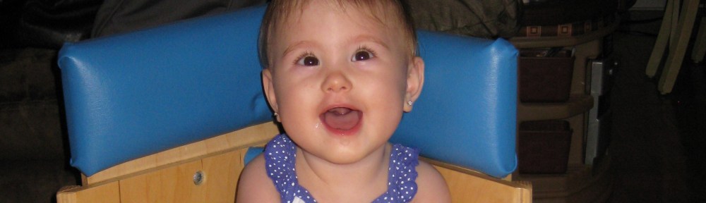 Mattie’s one year well visit was this week. Mattie is now 17 pounds 13 ounces! She is in the 75% percentile for height and 5% for weight. She is really tall but not very big. We went through her history since our last pedi appt and then through her development. Dr. B places her around 6 months old and around 4-5 months gross motor. We are going to go back in 6 weeks for a developmental and weight check up and a shot (we are on an alternative vaccine schedule). I was not happy with her weight gain, but Dr. B thinks she is still making steady progress. He wants to see her in the 25% range by her 2nd birthday.