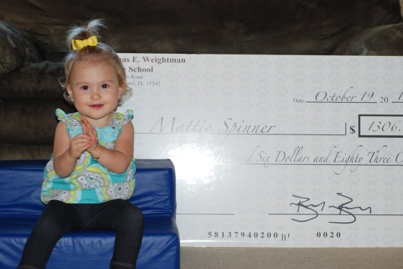 Somehow, someway an entire middle school was able to raise $1,306.83 for Mattie. The amount is amazing. The day my mom told me the total, I was in shock. So many amazing people came together to make this happen. A special needs class civic project taught me more about giving then I have ever known. The thought of other special needs kids helping out Mattie is just amazing. What a beautiful lesson to be taught 😉
