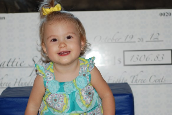 The girl who presented us with the check had told her parents about the fundraiser and they had also decided to come to the party. It was interesting to hear their perspective on raising their daughter and some of the difficulties they had overcome. They told us that Mattie had a lot of the same mannerisms as their daughter and that their daughter didn’t speak or walk until she was 6 years old. Everyone says not to compare kids with CP because no two kids or their circumstances are the same, but it is difficult not to. While it was exciting to hear a similar story as ours and where they are now, it also put into perspective the long road we have ahead of us. This is part of the emotional back and forth parents of a special needs child have to deal with.