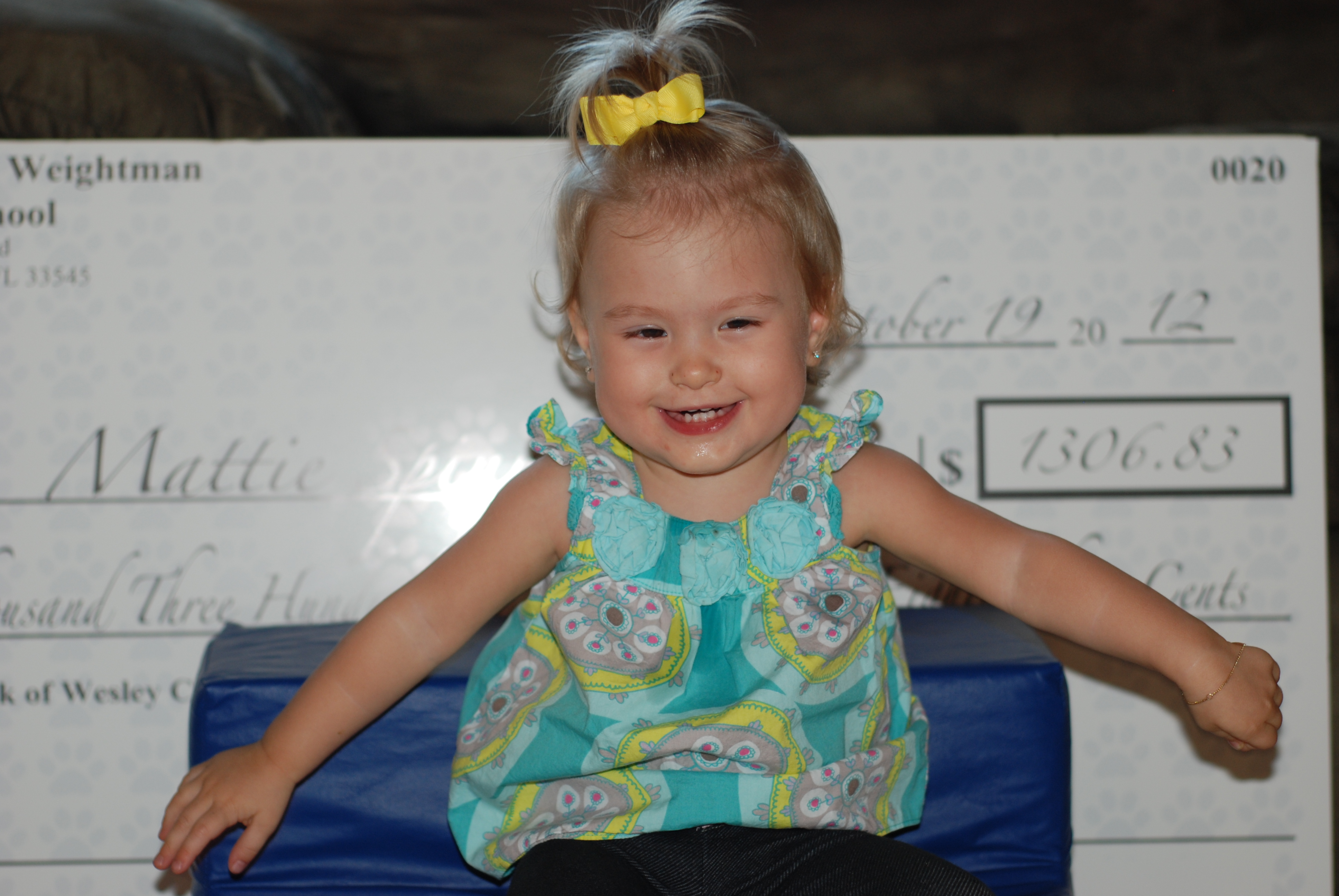 The entire student body was told that the class which raised the most money would be treated to an ice cream party where they would have the opportunity to meet Mattie. Each morning a video would play of Mattie. This video showed how hard Mattie worked to try and do what most children take for granted. The students and staff pulled through from their hearts and piggy banks to donate, showing tremendous support for her and the classroom’s project. The talk on the campus was how much they wanted to meet Mattie, they weren’t interested in the ice cream!