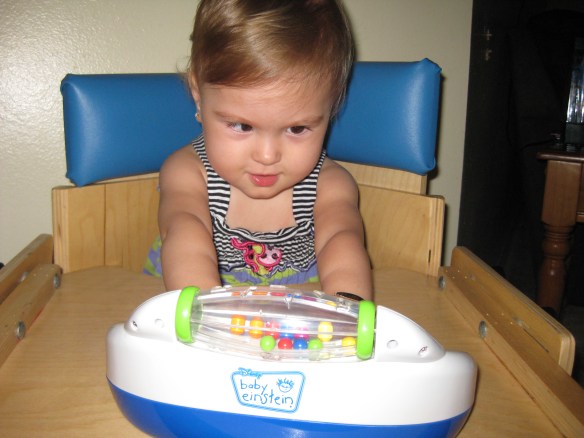 2013 was a great year for Mattie. At the beginning of the year, her primary mode of transportation was rolling around. This past year Mattie first learned how to army crawl, then later developed her “frog-hop” (patent-pending). Mattie also learned to sit up on her own, albeit in ways you and I wouldn’t even think about attempting. Mattie’s biggest progress this past year came in her language and cognitive skills. A year ago, Mattie could only say a small handful of words. Now, Mattie is capable of talking to you in 4 -5 word sentences. The other day when I came home from work for lunch, she exclaimed to the nanny, “I want to play with my daddy!” It was the highlight of my week.