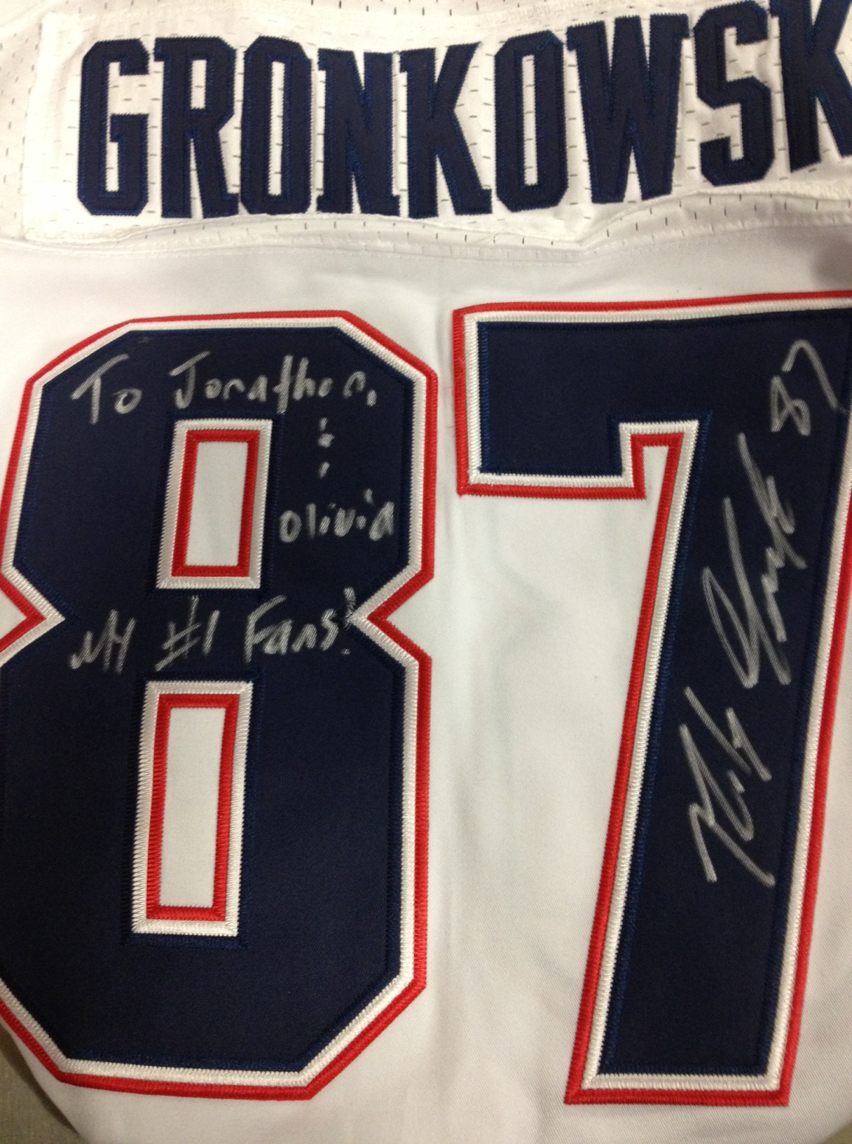 A very amazing friend put together a Raffle for Mattie recently. We were raffling off a personalized signed game day jersey from Rob Gronkowski, the New England Patriots tight end. With 115 entries into the raffle, the winner was Ian Baxter, who by the way, is a huge Patriots fan. Ian had the shirt personalized with his kids names 🙂 Too Cute! Click this link to see Mattie pull the winner: